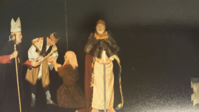 Meine erste Premiere an der Dittchenbühne fand im Jahr 1999 statt. In diesem Stück, um den Hochmeister des Deutschen Ritterordens zu Beginn des 15.Jahrhunderts, will Von Plauen bei den Rittern wieder die alte Zucht und Ordnung einführen, was bedeutet, den weiblichen Wesen zu entsagen. Mit diesem Mittel will er den Ritterorden stärken, um den Angriffen der Polen und Litauer gegen den Hauptsitz des Ordens, der Marienburg, zu widerstehen. Es kam zu Spionage, Verrat und Fall, sowie einem unerwartetem Ende. Ein sehr schönes historisches Stück, in dem ich zwei kleine Nebenrollen spielen durfte, was mir letztendlich den Weg zu vielen großen Rollen ebnete.